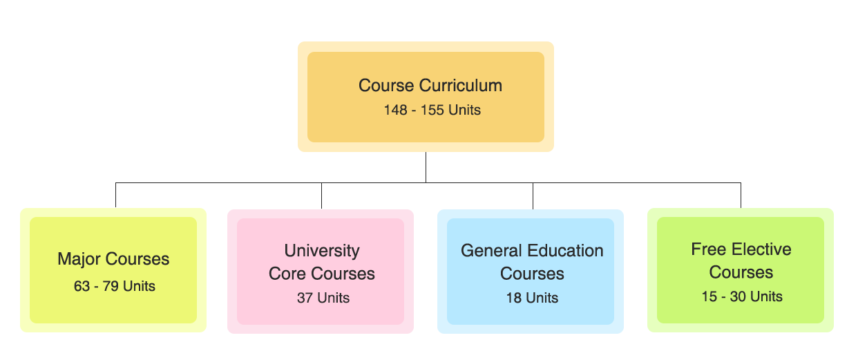 To earn a Bachelor’s degree at BNBU, students need to complete a total of 148-155 units of course work. Out of these units, they are required to take a total of 37 units of University Core (UC) courses and 18 units of General Education (GE) courses.