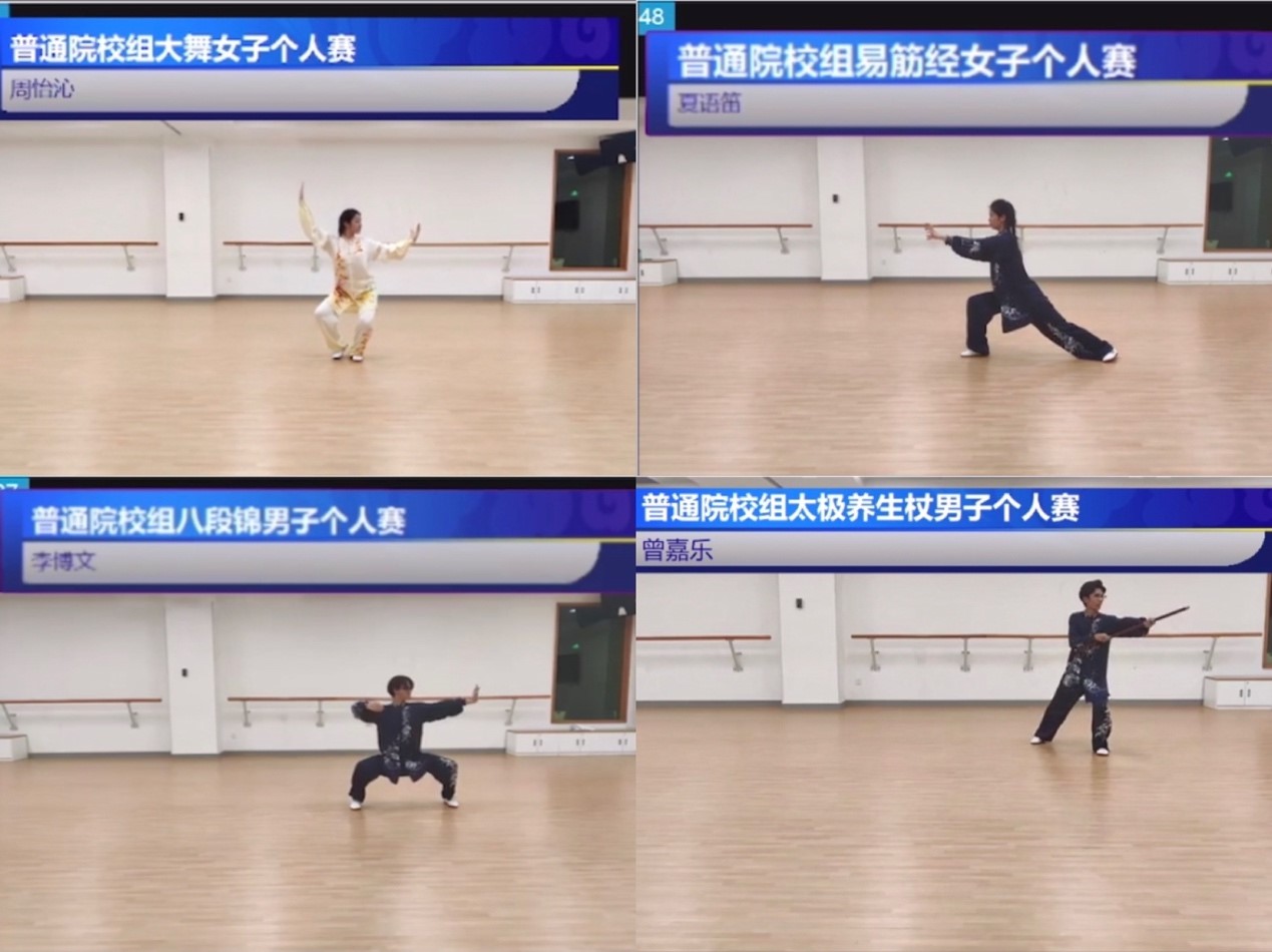 A total of 195 national colleges and universities participated in this competition, including 142 common colleges and 53 P.E. colleges, and the scale of the competition hit an all-time high. The competition lasted for four days, covering Health Qigong Yi Jin Jing, Wu Qin Xi, Liu Zi Jue, Ba Duan Jin and other competitions. Due to the epidemic, all the competitions and scoring were held in the form of live streaming.