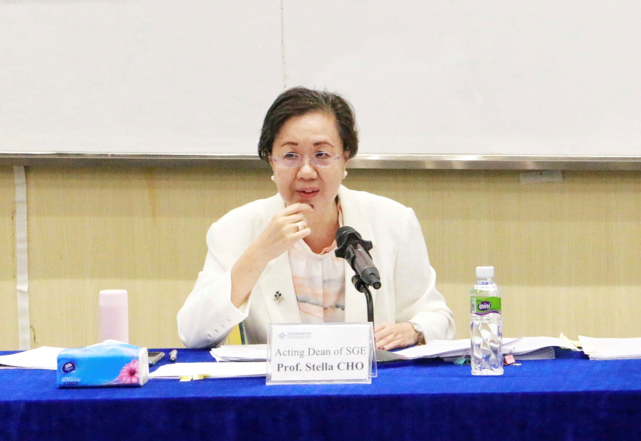 The meeting was chaired by Prof. Stella CHO, Associate Vice President (Student Development) and Acting Dean of SGE, and attended by the Associate Deans Prof. Haipeng GUO and Prof. Hongyu WU, along with Prof. Lei SHI, Head of WPEC, Dr. Milen JISSOV, Head of GECC and Mr. Jonathan James CORBETT, Associate Head of ELC. All teaching staff of SGE attended the meeting except for those who were occupied with teaching assignments at the meeting period.