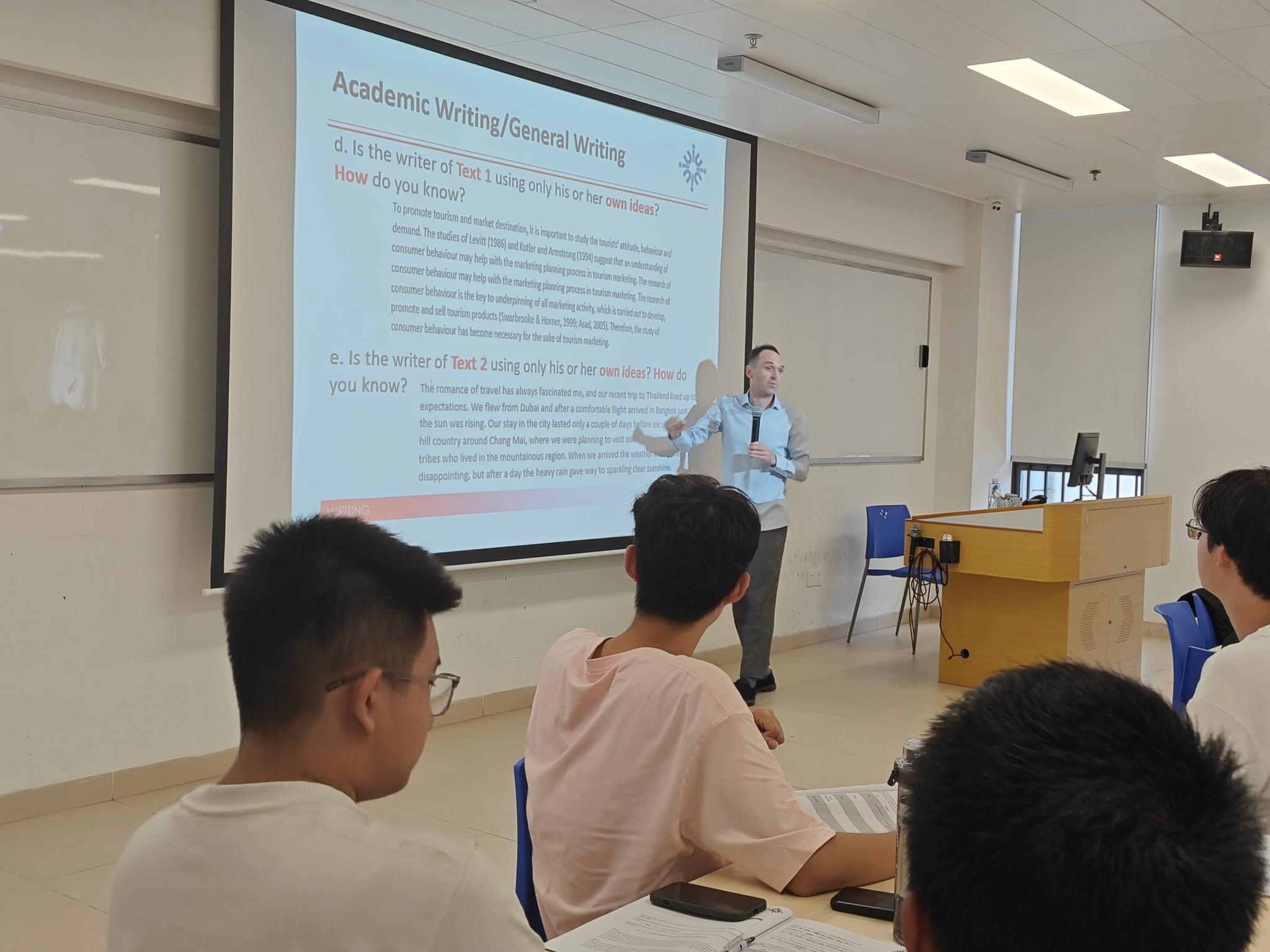 In the academic speaking classes, students faced the challenge of articulating their thoughts in English. Several students approached me after class, seeking advice on improving their oral English, as they grew up in an exam-based education environment where speaking was their weakest skill. Their determination and eagerness to use English fluently and engage in meaningful exchanges with others were evident, and I am excited to support them as they continue to grow in confidence and ability.