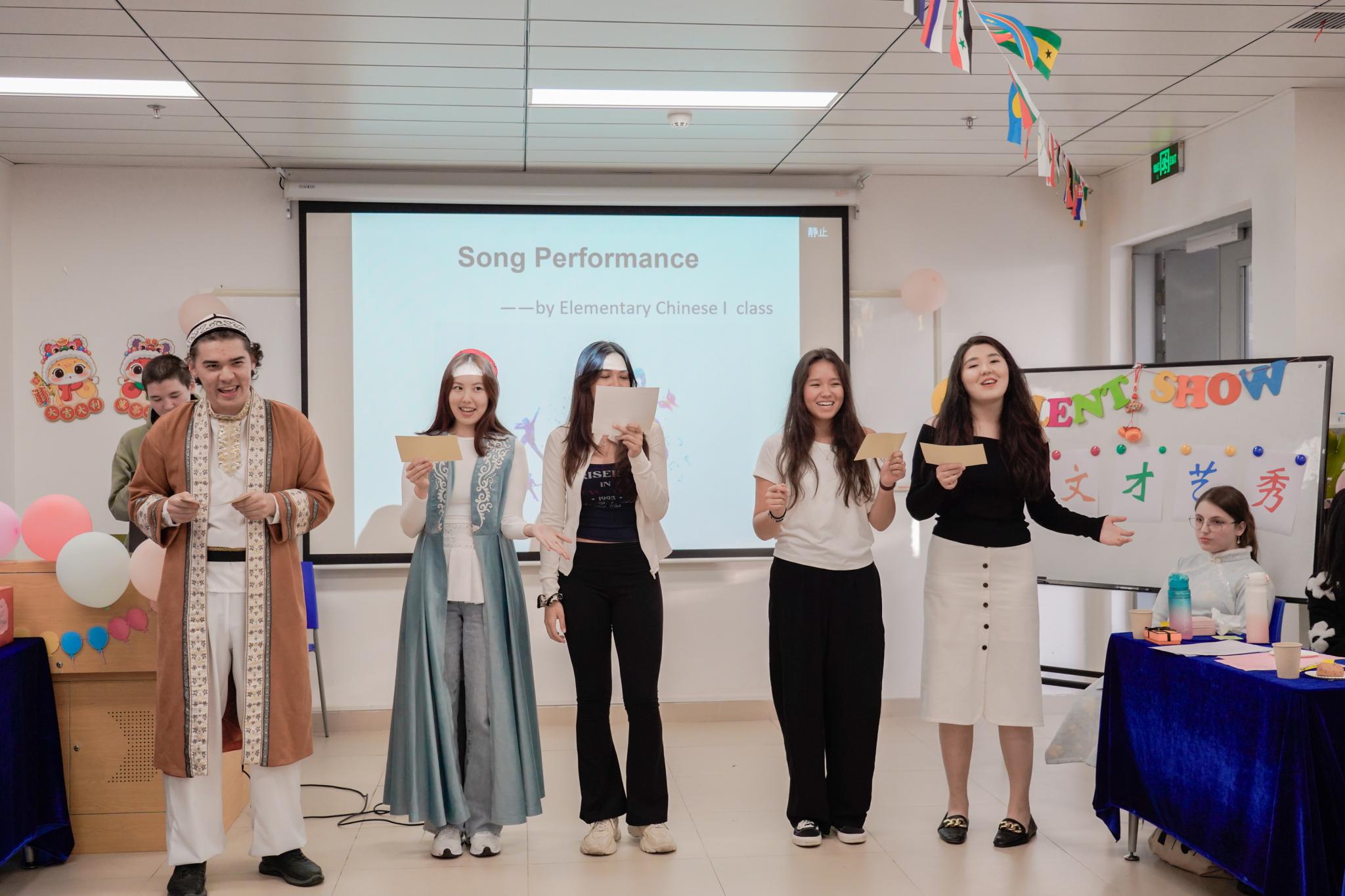 Students from Intermediate Chinese I class performing Chinese song “Xue Hua Piao Piao (雪花飘飘)”