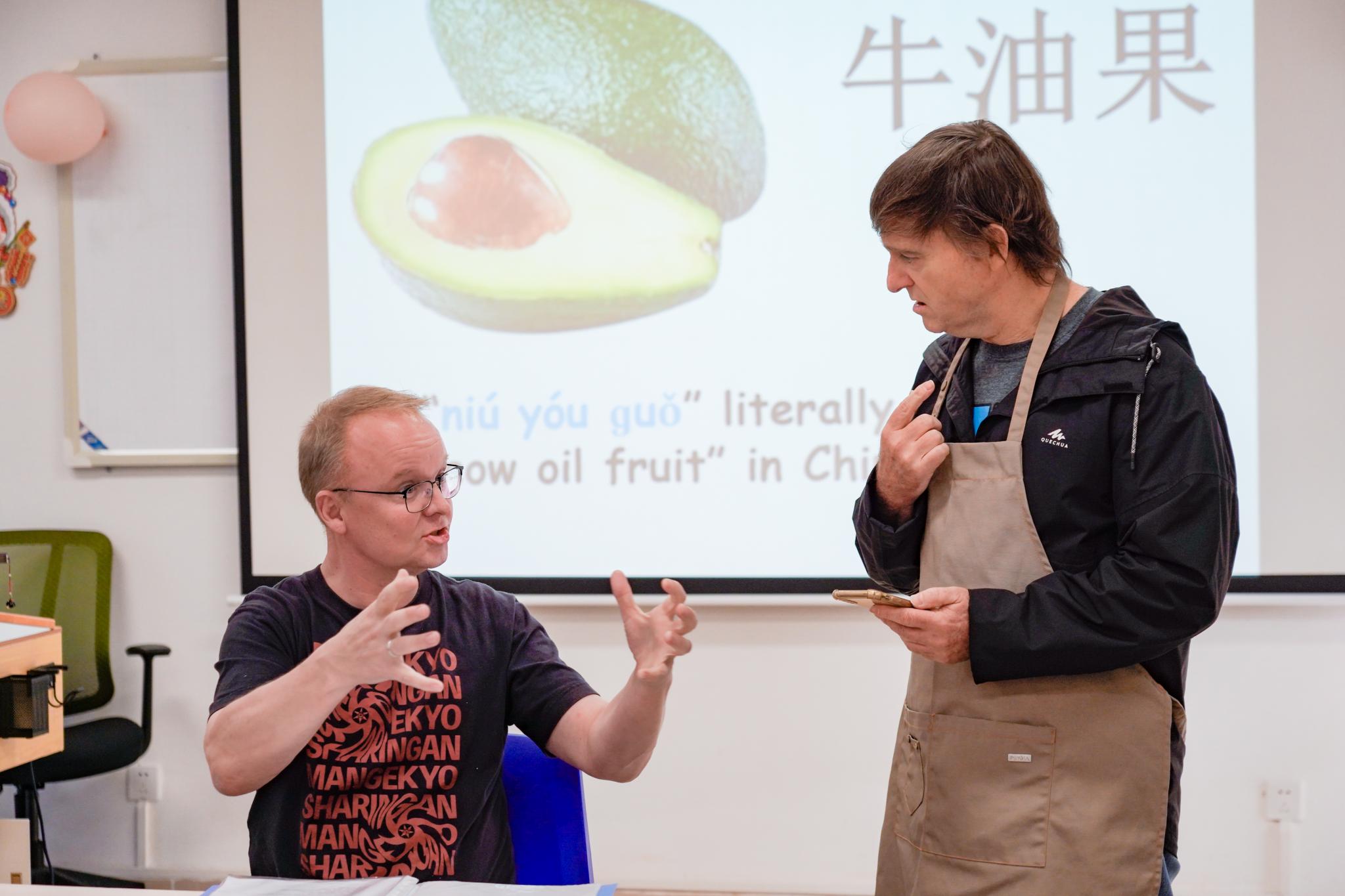 Dr. Wilhelmus Johannes Helmut WARMENHOVEN (left) and Mr. Andrew William PEAT (right) performing stage comedy “Dian Cai (点菜)”