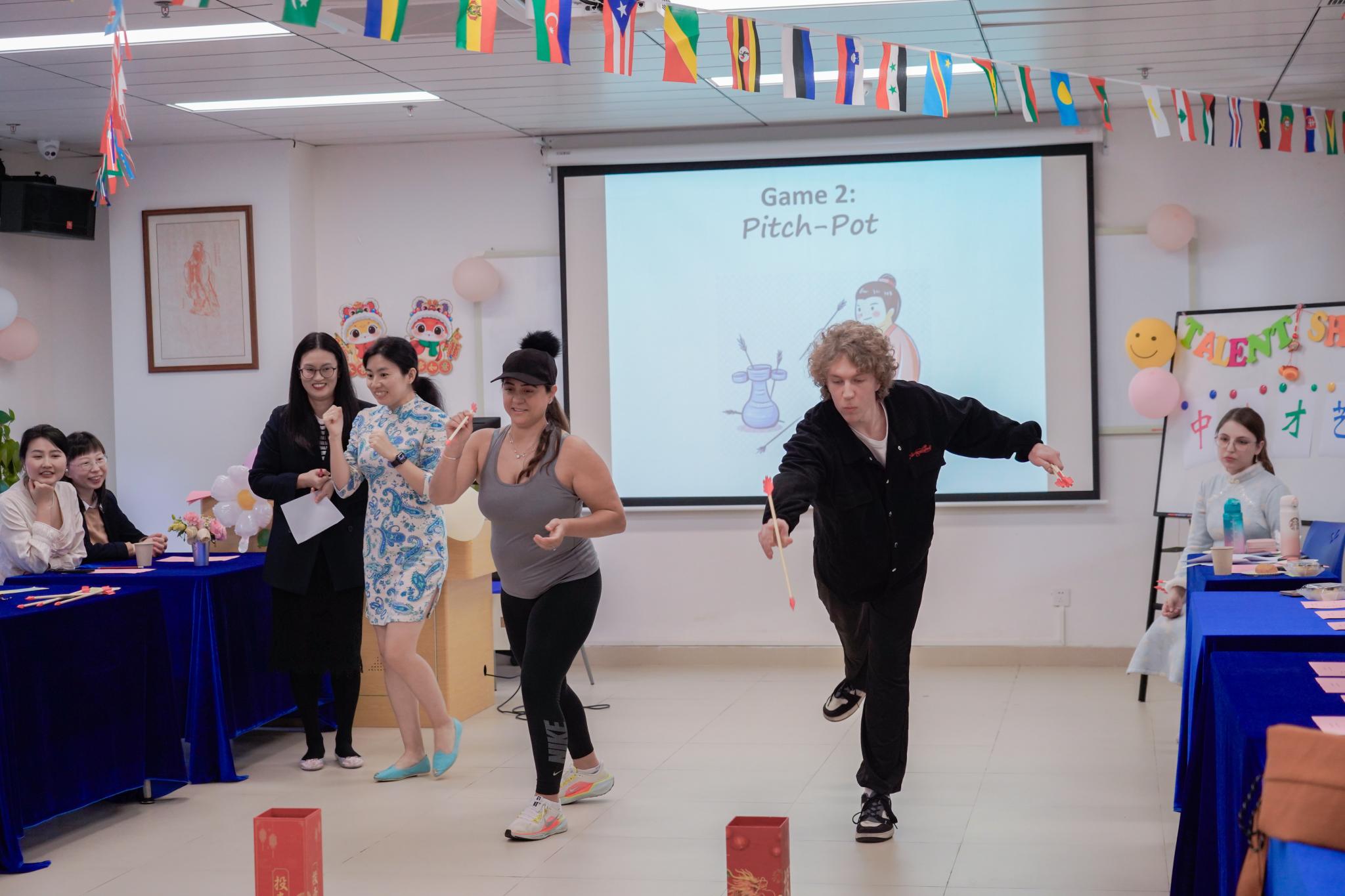 The event, held in a lively and festive atmosphere, has shown the impressive linguistic and cultural achievements of exchange and international students enrolled in Chinese language courses. Hosted by Ms. Angela Liu from CLCC and Claudia Gandini from Intermediate Chinese I, the show included some exciting activities such as stage comedy, pitch-pot, Chinese song performances, and charades.