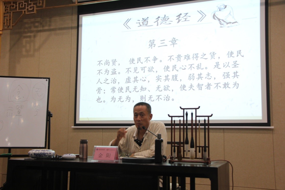 “道可道,非常道”,金阳先生从《道德经》的成书背景出发,介绍了老子西出函谷关,留予尹喜五千言,遂成《道德经》的故事。他指出,以有形述无形,虽能传之于世,但一切有形的都在变,文字在变,听众在变,唯一不变的是“道”的本质,所以我们需要悟自己的“道”。“名可名,非常名”,也是同样的道理,万物都是流动的、变化的,物质守恒却不是永恒不变,无法用单一的形态去固化它。