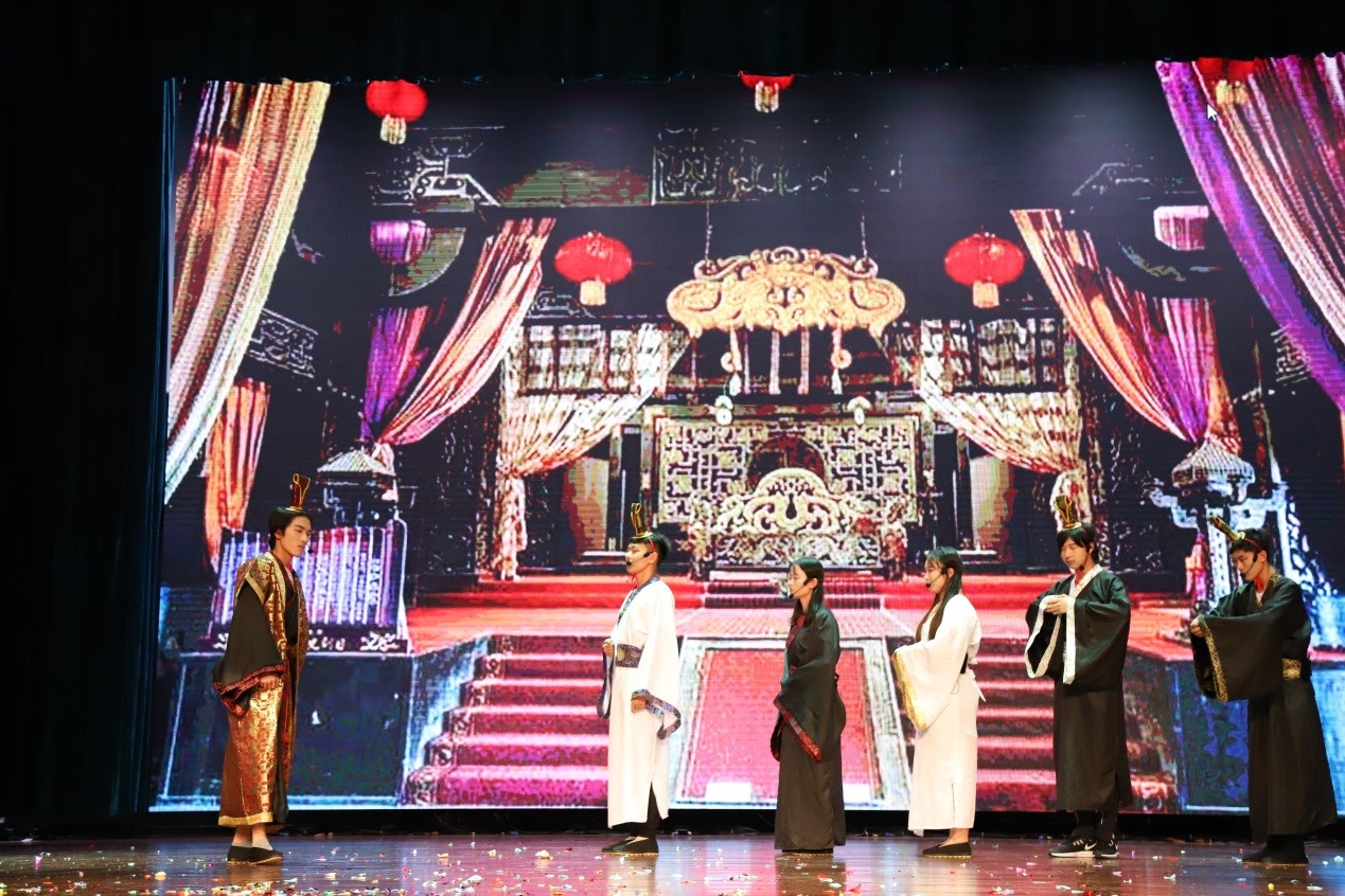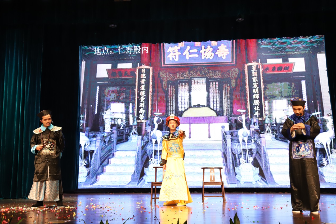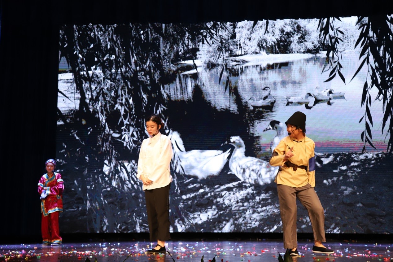 第五个作品《邹忌讽齐王纳谏》带着观众再次穿越回先秦。邹忌的故事同学们耳熟能详,但大一DS专业“水滴学社”的同学们在当中加入了不少幽默元素,逗得观众们哈哈大笑。评委老师李建会教授说这个故事里齐王有谦虚纳谏的智慧,而邹忌有巧妙劝诫的智慧,古人的这两重智慧值得今天的学子们继承学习,运用到日常生活中。