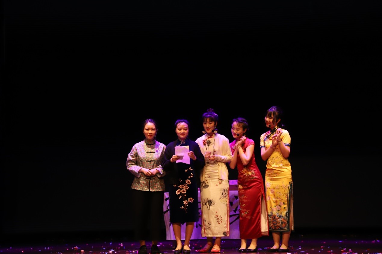来自AE专业的“杜若社”带来作品《囚》。剧本改编自苏童的小说《妻妾成群》,讲述了民国初年女学生颂莲被卖到陈老爷家作四太太后,被金钱与地位诱惑,卷入府里太太们的争斗中,不幸落败发疯的故事。孙萍女士点评道,这个故事虽有张艺谋导演的影片《大红灯笼高高挂》珠玉在前,但学社成员通过对角色的重新解读,将原著浓缩成二十分钟左右的戏剧,情节极具张力和震撼力。“囚”这名字起得尤其好,既反映了剧中女性被困于封建制度下的凄惨命运,也揭示了人心在欲望牢笼里不得出路的可悲处境。