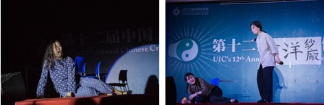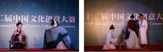 第四个演出是《生死迷蝶》,大一文化创意与管理专业(CCM)的“荣耀社”将观众的视角再次拉到先秦时期。该剧把大家熟知的庄子“鼓盆而歌”和“庄周梦蝶”的故事巧妙融合,讲述了庄子的“生死观”。在表演中,同学们自行设计的角色“太上老君”会用Ipad查看下凡“庄子”的近况,炼的仙丹竟然是巧克力。这些有趣的小细节和道具增加了舞台的可观性和现场效果,也是同学们创意的体现。林卫平女士在点评时说,同学们的表演“吸引了我们对古典进行更多的思考”,表达了对传统社会天人合一、道法自然的认同。