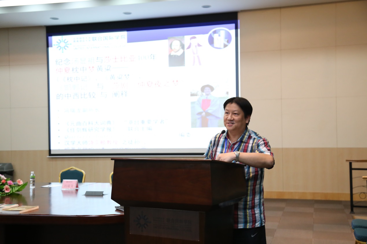 研讨会于上午9时正式开始,UIC校长吴清辉教授致开幕辞。在致辞中,吴校长说明了本次研讨会的主题,他指出,2016年注定是不同寻常的一年,因为今年既是一代革命伟人孙中山先生诞辰150周年,同时也是中西方两位文学巨匠——汤显祖和莎士比亚逝世400周年。吴校长强调,在当今文化全球化的冲击下,目前的紧要任务就是在中西比较的视野和多元的视角下,对中国那些传世的文学经典著作和作家进行更深层的解读和研究,继续努力让中国文学“走出去”。此外,不管是距今时间有多么遥远的文学作品,在今天依然有着无限多种的解读的可能性,也就是说,我们不应该停止对经典文学作品在文学、文化乃至社会层面意义上的挖掘与研究,努力让更多的人领略到经典作品的魅力。