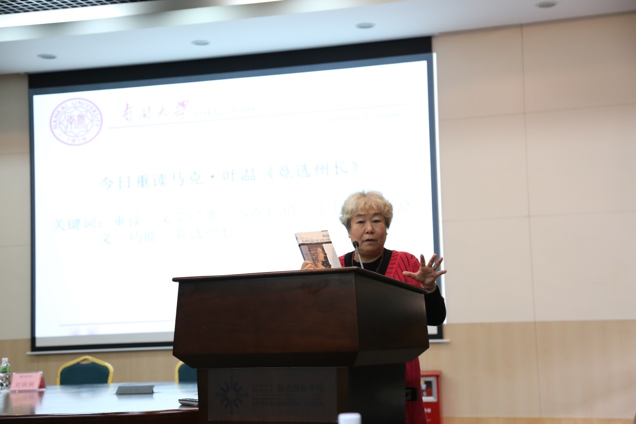 下午作首场演讲的是南开大学文学院教授刘俐俐女士。刘教授首先援引了吴校长在开幕词中亦有提及的卡尔维诺的著名文章《为什么读经典》,强调了在今天重读经典的意义,便开始其题为《重读马克·吐温的著名短篇小说〈竞选州长〉》的演讲。《竞选州长》是多次入选中学语文课本的经典文本,以往对其的解读多侧重于批判资本主义社会的民主制度方面,而刘教授指出,这篇作品一开始只是刊登在幽默刊物上的一篇小品,随着马克·吐温全集的出版,我们可以对作品的含义有一个更全面的解读。刘教授从叙事学的文本分析出发,从不可信叙述者、通篇性讽刺结构等方面分析这篇小说的文学技巧,并引入民俗学中的“平衡理论”阐明了小说的叙事结构,又以“建立读者的优越感”解释小说所产生的幽默效果,令人有耳目一新、别开生面之感。最后刘教授强调,如同所有人文科学那样,文学作品的意义是层层累加并处于动态之中的,在不同的文化语境之下,文学作品的意义也可以有不同的阐释,今天的我们是幸运的,因为我们拥有比以往更为宽松的语境,有利于我们把文本还原到原本诞生的语境中,作出更深入贴切的阐释。刘教授也解答了同学关于“如何更好地阅读文学作品”的问题,她指出,阅读分为两种,即为了鉴赏的阅读与为了研究的阅读,前一种阅读更偏重于个人的直观感受,而后一种阅读则往往需要阅读作品以外的大量研究资料来支持,同学们可根据自己的需要作出选择。