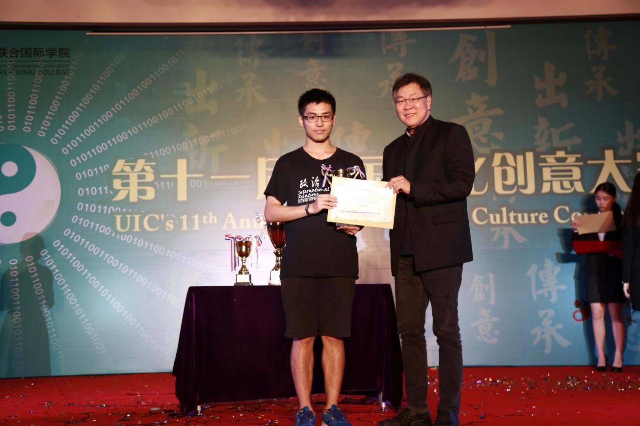 (邓泆镝同学荣获“UIC影帝”称号) ( 张馨元同学荣获“UIC影后”称号)