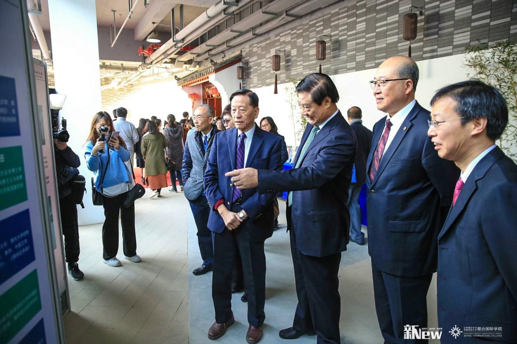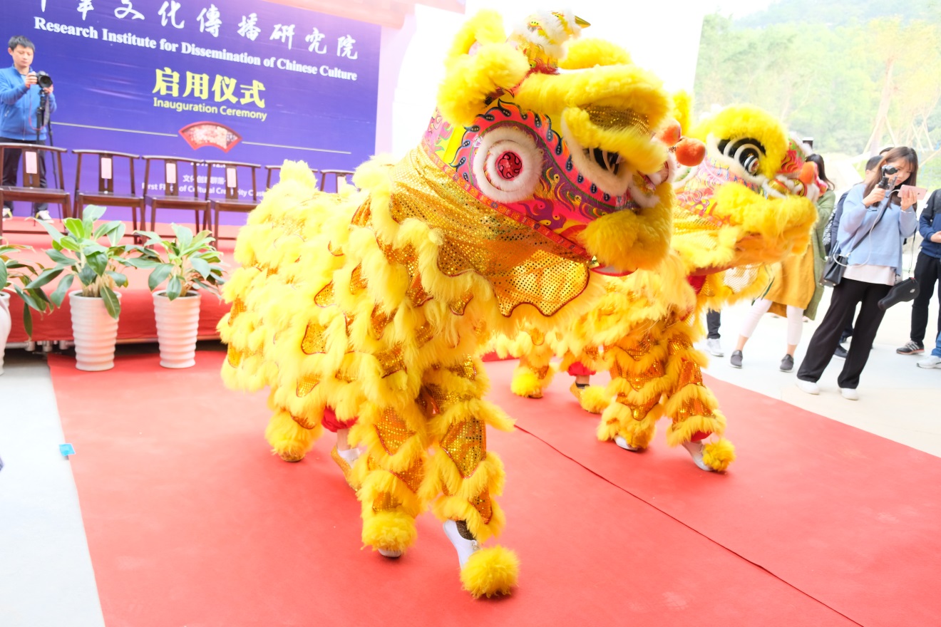 致辞环节后,所有嘉宾移步至研究院大门。联合国际学院校长、中华文化传播研究院常务副院长吴清辉,上海华信公益基金会执行理事长李光金,北京大学人文讲席教授陈鼓应,中国华信能源有限公司副总裁陈强,联合国际学院副校长徐是雄、张聪,国家一级演员孙萍,叶金森,中国文化院(香港)总经理吴建芳和中华文化传播研究院秘书长伍鸿宇担任击鼓启门的主礼嘉宾。主礼嘉宾共同击鼓三通后,研究院应声启门,中华文化传播研究院至此正式启用。