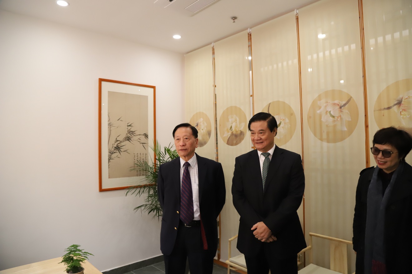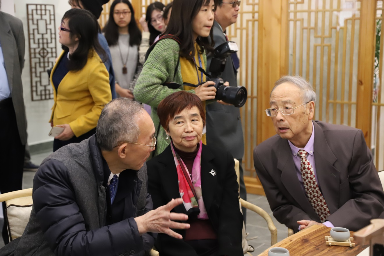 北京大学陈鼓应教授作为首届“华信杰出学者”,为庆祝中华文化传播研究院启用,将自己所著的二十册(十五册)文集赠与书院,吴清辉校长回赠UIC新校园画轴。
