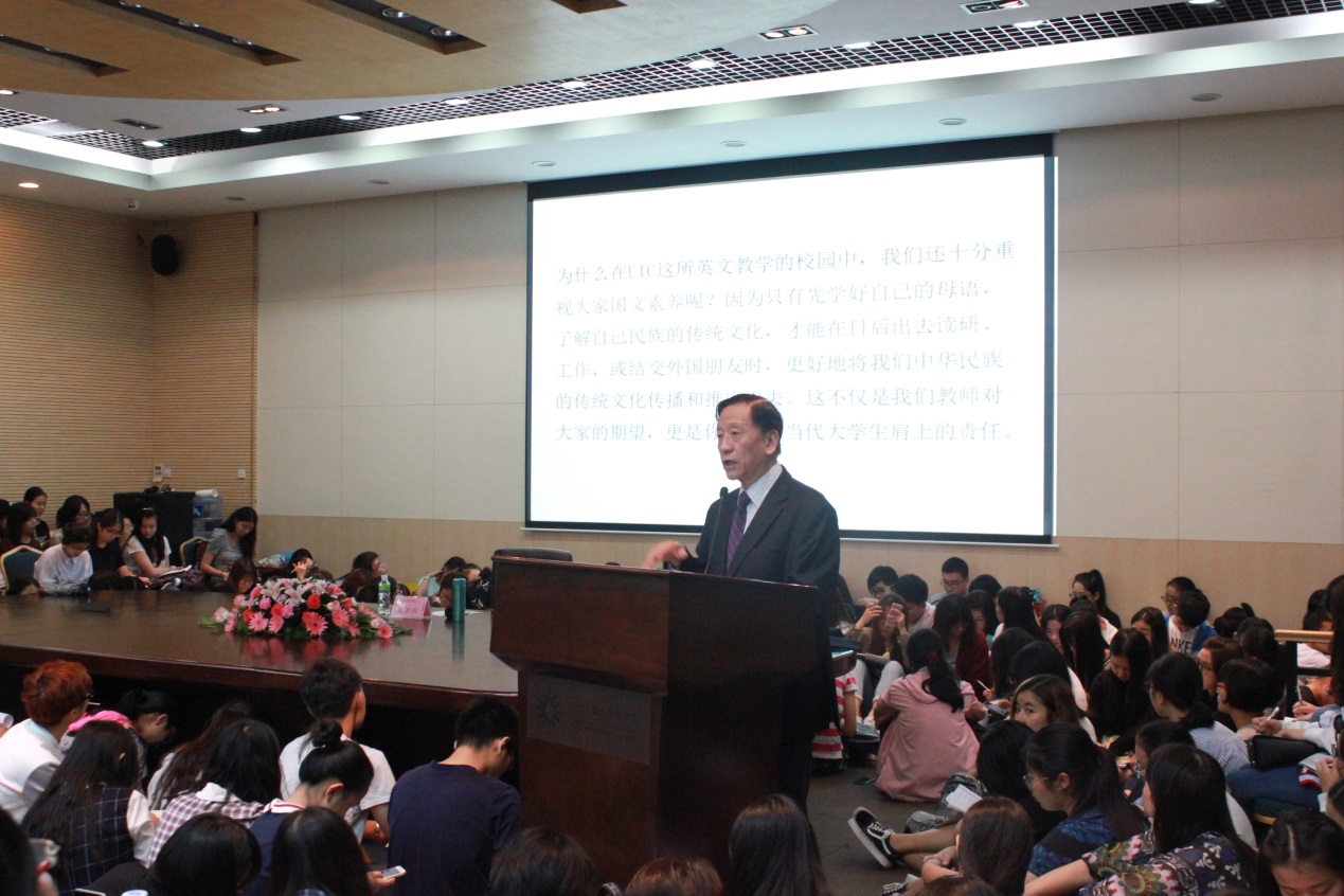 与此同时,学校也十分重视国文教育。吴校长强调,传扬中华传统文化,实现民族伟大复兴,这是当代大学生肩上的责任。只有先学好自己的母语,了解自己民族的文化,才能在日后的学习工作中,更好地将中华民族的传统文化传播和推广出去。因此自建校以来,学校很重视国情国学教育。这次的演讲,也是其中一环。