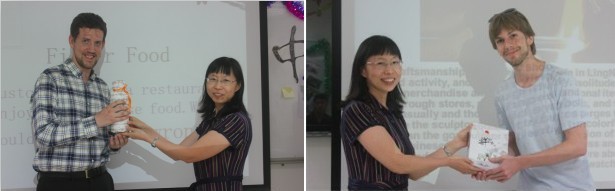 此外,才艺秀还为参与的师生们准备了小游戏,如“N+3”数数游戏,萝卜蹲等。抽奖环节中有几位幸运者获得了具有中国特色的礼品、精美的青花瓷餐具、剪纸、梅兰竹菊的纸扇。此次活动还有一个特殊的颁奖环节,乒乓球奖颁发给了男女乒乓球冠军Alex Henke(DBM);摄影的一、二、三等奖及优胜奖分别是Christopher Hall(WPEO)、TyleTyler Wyckoffr(ELC) 、Anja Sundstrom(ELC)和Abeni Hill(ELC).