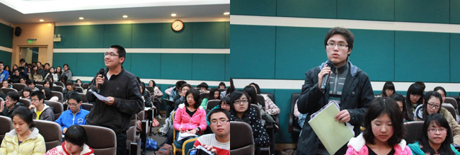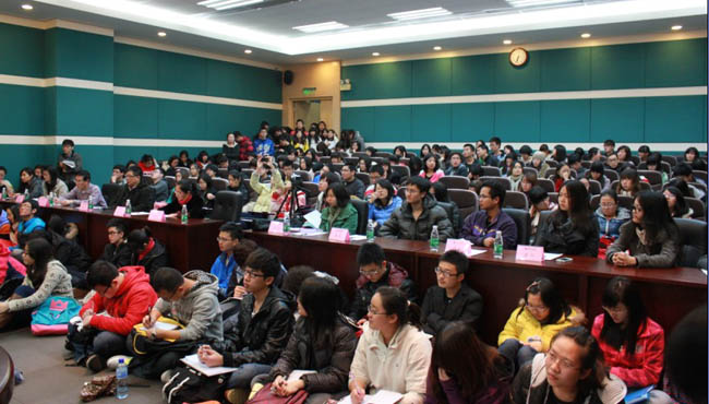 许教授的演讲条理清晰、内容贴近大学生活,在场同学都听得兴致勃勃。会场座无虚席,还有很多同学席地坐在讲台旁。问答环节中,同学们深入思考、踊跃提问,许教授一一认真解答。许教授强调大学办学应有个性,学生学习应当少些功利多些乐趣。他还提出了道德不能量化的观点,主张"有一份热,发一分光",使在场同学受益匪浅。