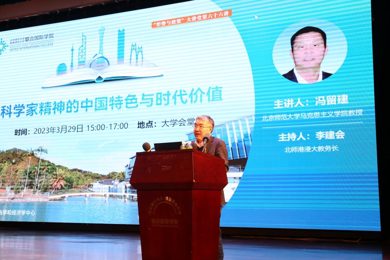 2023年3月29日下午,北京师范大学马克思主义学院冯留建教授带来了题为“科学家精神的中国特色与时代价值”的演讲,讲座由北师港浸大教务长李建会教授主持。