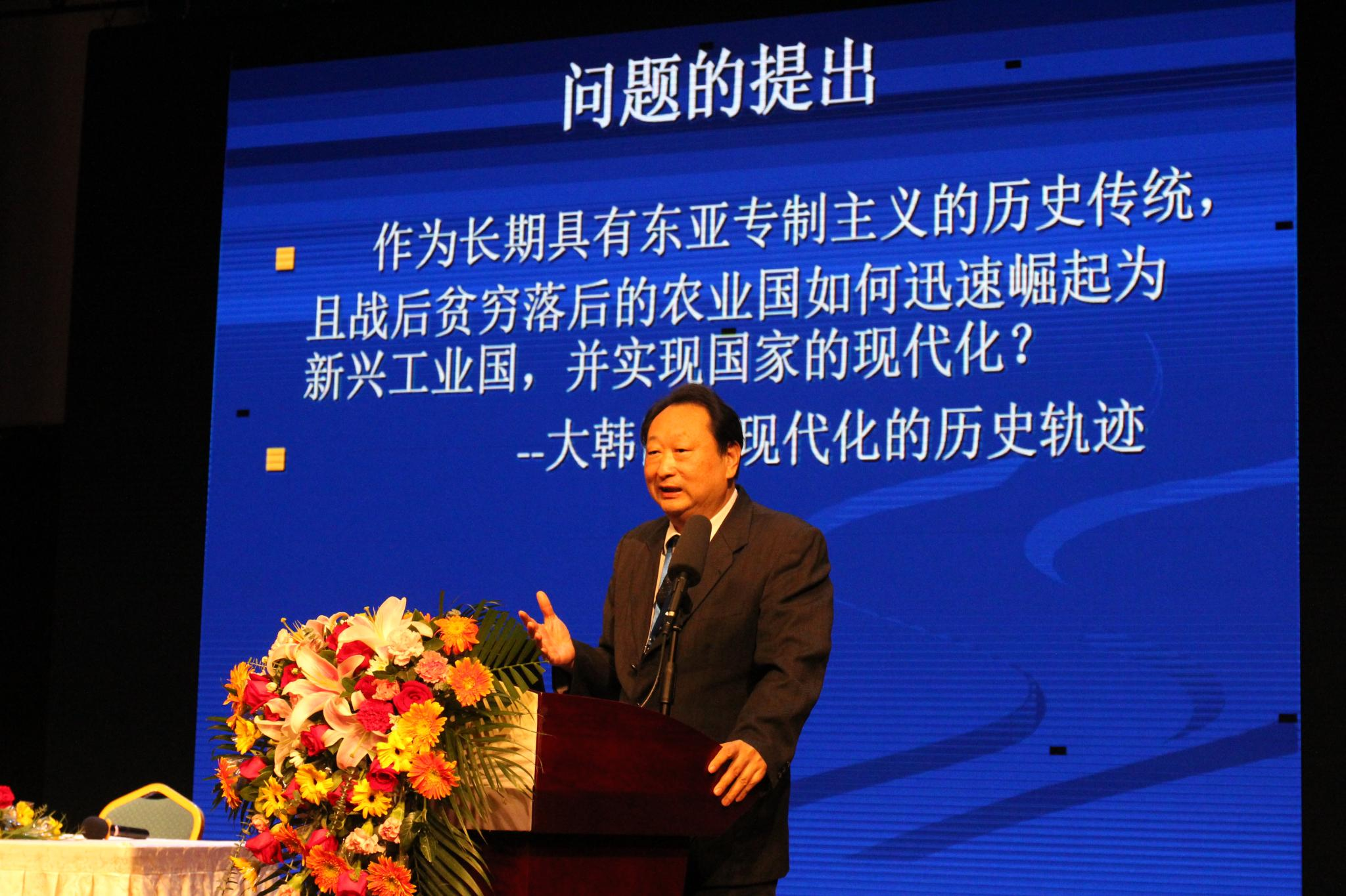 第四场讲座由中山大学国际关系学院魏志江教授主讲,题目为《韩国现代化的历史轨迹》。魏志江教授从历史、政治和经济等多个方面,介绍了韩国这样一个具有东亚专制主义历史传统的贫穷落后农业国迅速崛起为新兴工业国并实现国家现代化的历程。韩国现代化的历史轨迹经历了以下几个阶段:从1948年到1960年,韩国经济开始走向光复和重建,逐步形成以消费品生产为中心的工业体系,原料和资金对外依赖严重,工业命脉被少数大企业垄断,财阀初步形成。1961年至1981年,韩国基本实现了经济的现代化,在强权政府的主导下完成了四个“五年经济计划”,注重出口导向和国内市场的保护,建立重化工业体系,这一系列的措施使得韩国从战后世界极端贫困的国家崛起为亚洲“四小龙”之一,并创造了所谓“汉江奇迹”。1982年至1996年,韩国进入调整期,面对经济发展的瓶颈和军部独裁体制与民主运动的激烈碰撞,韩国政府着力调整失衡的产业结构以促进产业转型升级,同时提高社会福利和国民收入,通过扶持中小企业发展改变大企业垄断经济的格局,以“世界化”和“市场化”作为经济战略重心,韩国资本和贸易进入了自由化时代。1997年后,韩国经历金融危机,但经济转型的步伐并未停止,民间主导逐渐取代政府主导,经济发展继续朝着国际化与自由化的方向发展,经济结构也进一步向着高附加值产业升级。魏志江教授认为,纵观韩国经济现代化的进程可知,“政府主导”之属性始终占据着重要角色,韩国经济现代化与政治现代化并非存在自然因果关系,经济高速发展并没有自由伴生民主化的出现。这样独特的现代化的历史轨迹引人深思。在本场讲座的互动环节中,魏志江教授与现场师生共同探讨了东亚国家现代化民主运动的存在空间,也深入分析了韩国经济发展与社会化属性相悖离的根源所在。
