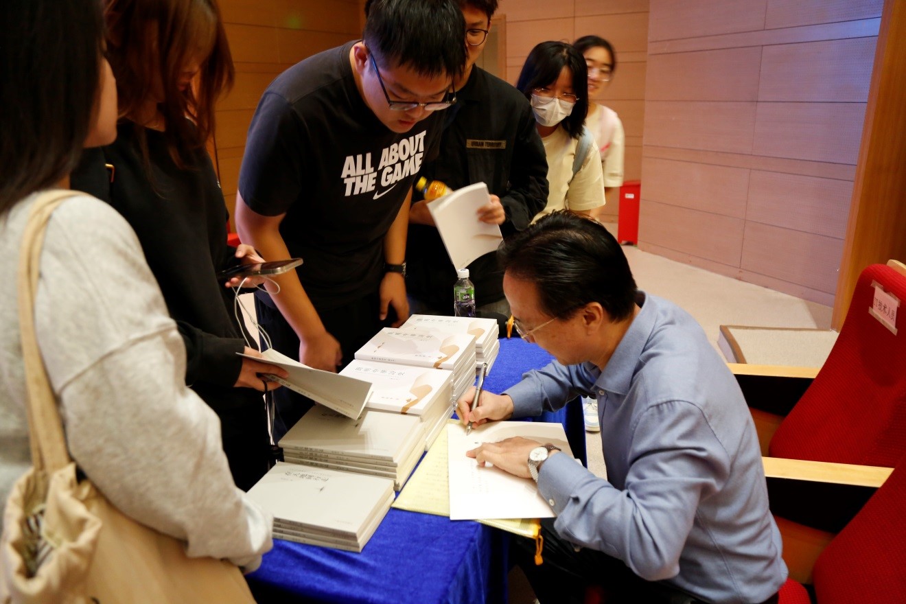 蔡新华先生还带来两本自己的著作赠予UIC的师生,并在讲座结束后为同学们在书上签名留念,现场排起了长龙,气氛热烈。