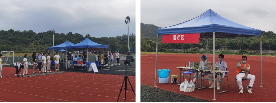 田径场上,我校学生积极参与,认真完成各项测试,发挥出自己最佳运动水平。教师们以认真负责的态度,严格按照测试内容标准,确保测试全过程公平、公正、公开,测试数据客观、真实、可靠。各学院老师及志愿者紧密配合,全程协助测试组开展测试工作。此外,医护人员及救护车全程在现场待命做好应急准备,确保学生测试过程的安全。