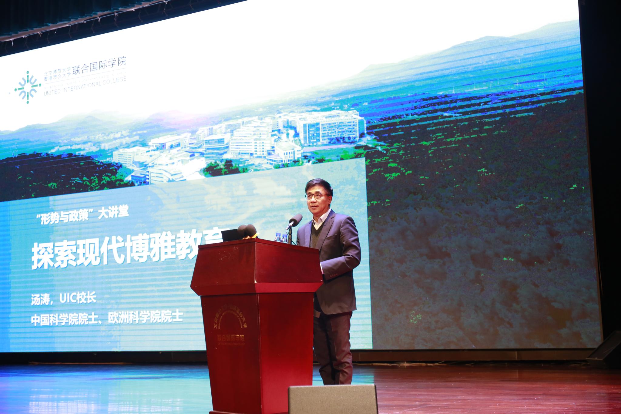 最后,汤校长与UIC的师生们共同展望未来UIC的博雅教育。UIC珠海创立,引进西学,弘扬国学,走出了中国教育国际化的新路。面对新的发展机遇,UIC将以高质量的专业师资为支撑,推动发展特色研究领域,结合博雅教育特色,按照社会需求培养文理兼通、全面发展、认知丰富的全人。在校园建设方面,汤校长为师生们描绘了二期校园建设、打造大学文化小镇的蓝图。