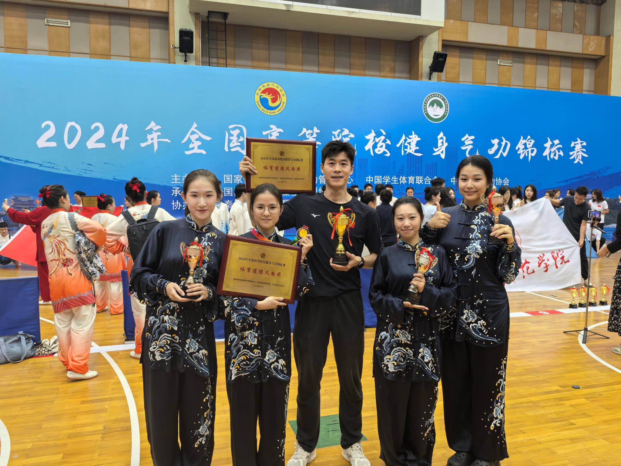 2024年7月26日至30日,由国家体育总局健身气功管理中心、中国学生体育联合会、中国健身气功协会主办,国家体育总局秦皇岛训练基地承办,秦皇岛市体育局协办的2024年全国高等院校健身气功锦标赛在河北秦皇岛成举行。我校气功队在教练方文泽老师的悉心指导下再现风采,荣获多项荣誉。其中,我校气功队在八段锦集体项目以8.82分的成绩排名全国第二,荣获一等奖;在太极养生杖集体赛中以8.36荣获三等奖;来自会计学的刘昕彤在导引养生功十二法个人赛中以8.67分的成绩排名全国第三,荣获一等奖,收获一枚铜牌;张语函在五禽戏个人赛中以8.56分的成绩荣获二等奖;来自媒体艺术与设计的游子昕在健身气功·太极养生杖个人赛中以8.57分荣获二等奖;来自应用经济学的徐文琪在健身气功·八段锦个人赛中以8.59分荣获二等奖,我校气功队获得团体“道德风尚奖”。
