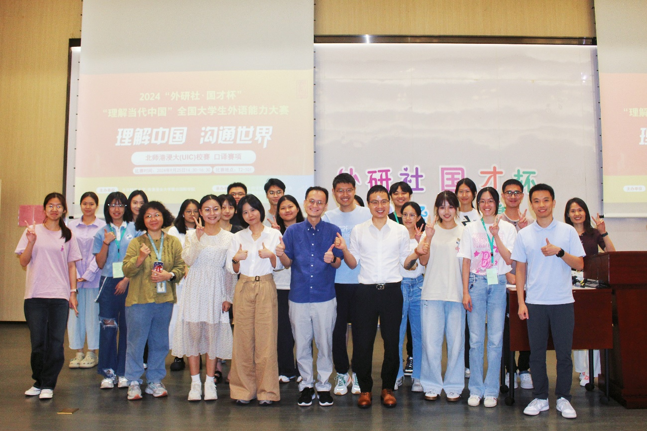 “外研社·国才杯”“理解当代中国”全国大学生外语能力大赛得到教育部高等教育司、高等学校外国语言文学类专业教学指导委员会和大学外语教学指导委员会指导,由北京外国语大学主办,外语教学与研究出版社承办,是国内颇具权威性和影响力的赛事。大赛以习近平新时代中国特色社会主义思想为指导,深入贯彻党的二十大精神,旨在推动“三进”工作、创新课程思政,深化教育改革、培育外语人才,讲好中国故事、服务国际传播。本届大赛面向全国普通高等学校全日制在校本科生、硕士研究生和外籍来华留学生,设置英语组、多语种组和国际中文组三大组别。英语组设置国际传播综合能力(含综合能力和演讲)、翻译(含笔译和口译)、短视频三个赛项。大赛采用校级初赛(校赛)、省级复赛(省赛)、全国决赛(国赛)三级赛制。尤其值得一提的是,今年大赛的广东省省赛将继续由UIC承办,于11月2-10日在UIC举行。