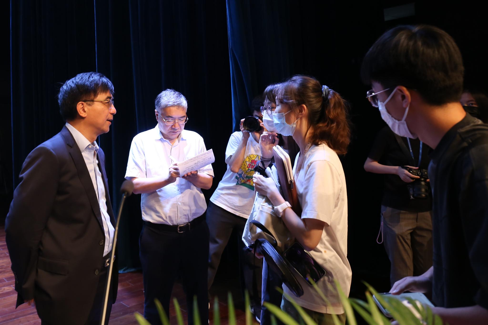 汤校长在讲座后与同学们继续交流