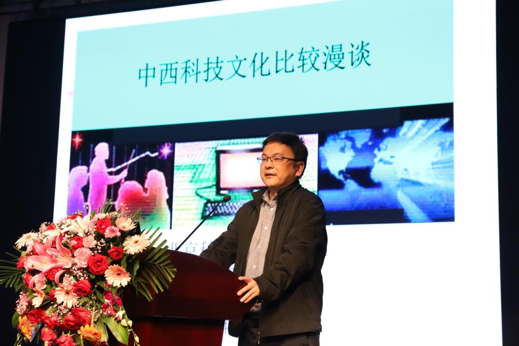 潘建红教授以“中西科技文化比较漫谈”为题,以四大发明对世界历史文明进程的影响,引入中西科技文化的比较。潘教授重点剖析了“科技文化”的内涵。他认为,科技和文化有着不可分割的联系;科技作为人类认识自然、改造自然的知识体系,属于文化的范畴;科技作为一种文化形态,以不同的方式改变着人们的思维方法、行为方式与生活方式等;科技和其他形式的文化因素,构成了人类伟大文化宝库,需从文化整体上去认识科技,用科技文化的观点研究科技。科技文化由表及里,分器物、制度、精神三个层面。中西文化在地理背景、思维模式、价值取向、学术价值观等方面有相当的差异。具体而言,中西科技文化分别以天人合一与二元对立为目标,以直觉形象与逻辑推理为方法,前者偏重实践理性,后者抽象理性。中国古代科学技术具有技术高于理论,理论高于实验的特点,这也与西方对科学实验的重视区别。针对中国主人追求人与自然和谐这一事实,有同学对如今中国人不注意环保表示疑问。潘教授认为,18世纪以来的工业革命引发了一系列环境问题,进而导致新型疾病,随之产生环保的呼声。中国作为发展中的大国,环境问题有其必然性,中国的传统智慧或可提供借鉴。