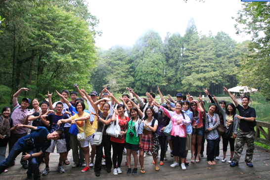 阿里山和日月潭是久负盛名的旅游胜地,在许多人的心目中它们就是台湾的标志。在本次行程的第三日和第五日,随着盘山公路的一路爬升,大家终于从长久以来的想象走进了生动的现实美景之中。阿里山海拨两千多公尺,热带林、暖带林、温带林并生,山峦叠翠,淙淙溪流穿行于绿荫林间,阳光从高耸的千年桧树的枝叶上撒下,投在葱郁的草丛以及人行栈道上,雾气朦胧中偶尔闪现出鸟儿跃动的身影,静谧而神秘。