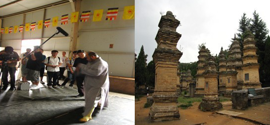嵩山少林,无论是达摩东渡的故事,还是金庸笔下的武林圣地,都使人充满期待。15日,在老师们的带领下,我们得幸参观了正在少林寺举办的一年一度的“机锋辩禅”,了解了本次“少林问禅”的内容与流程。开始之前所有人都双手合十,先诵念心经,为泥石流灾区祈福,再开始正式的辩论:由六人团坐,其中一人就辩题主讲,尔后其余五人一一对其问难。参观完辩论,少林武术总教练延庄法师为国学营师生介绍了少林武术的特点与禅武的关系,还亲自演示了一套少林柔拳,法师渊停岳峙之气度,于举手投足间展露无疑。随后一行参观少林塔林,当真群塔林立,每座塔之大小形制都有区别,其形制与年代相关,而规模则与其生前之贡献与死后弟子成就有关。
