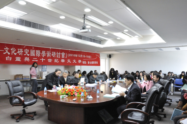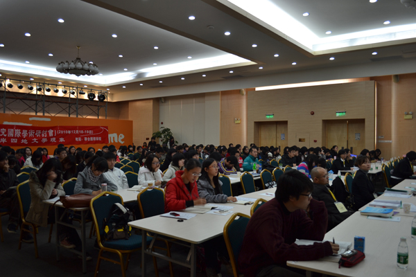 研讨会于12月18日上午九点在B102开幕。副校长张聪教授、冯燊均国学基金会主席冯燊均先生、香港大学黎活仁教授、《文艺争鸣》主编张未民先生、北京大学龚鹏程教授、著名诗人白灵教授、澳门大学朱寿桐教授、台湾明道大学罗文玲教授和我校科研处长张根发教授等在主席台就坐。中国语言文化中心主任伍鸿宇博士主持开幕式。张聪副校长首先致欢迎辞,他欢迎与会学者的到来,并衷心希望研讨会取得圆满成功。