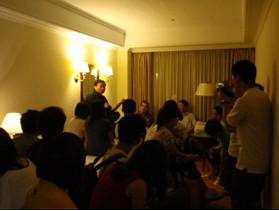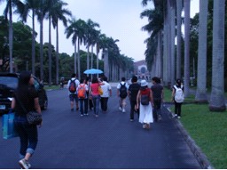抵达台北的第二天下午,在我们入住的康华大饭店会议厅,举办了"两岸青年学子大学生活经验论坛"。来自全台十多所大学的几十名大学生与24名UIC学生一起交流大学生活,分享了彼此的生活经验与学习心得。大家对共同感兴趣的校园生活与学习问题,展开了激烈讨论。论坛结束后,全体学生一起自助晚餐,自由交流,两岸学子相处非常融洽。