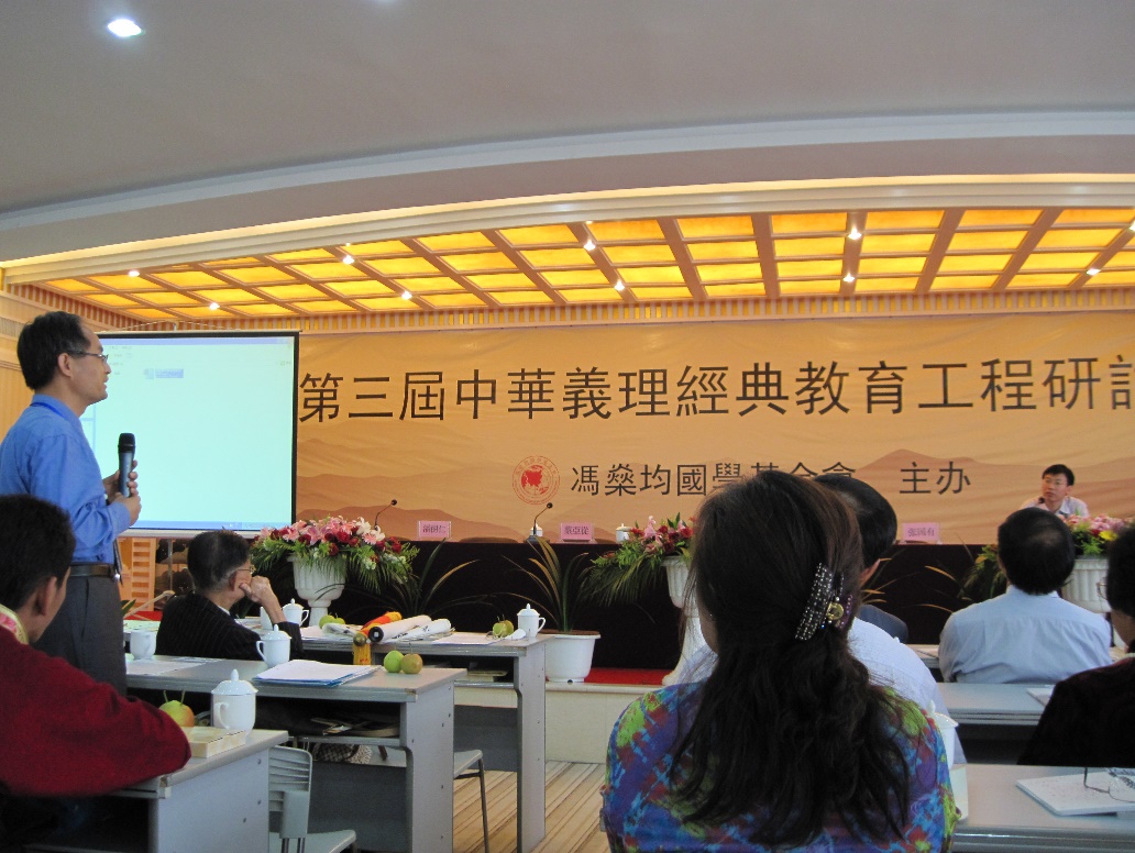 2010年7月24-26日,由冯燊均国学基金会主办的第三届中华义理经典教育工程研讨会在云南昆明莲花宾馆举行。来自大陆、香港和台湾近三百位学者、中小学教师和社会人士出席研讨会,围绕中华义理经典教育交流经验,并就未来如何进一步开展和推广经典教育工程进行了深入研讨。香港浸会大学副校长蔡亚从教授、陆大章教授,我校中国语言文化中心主任伍鸿宇博士应邀参加。